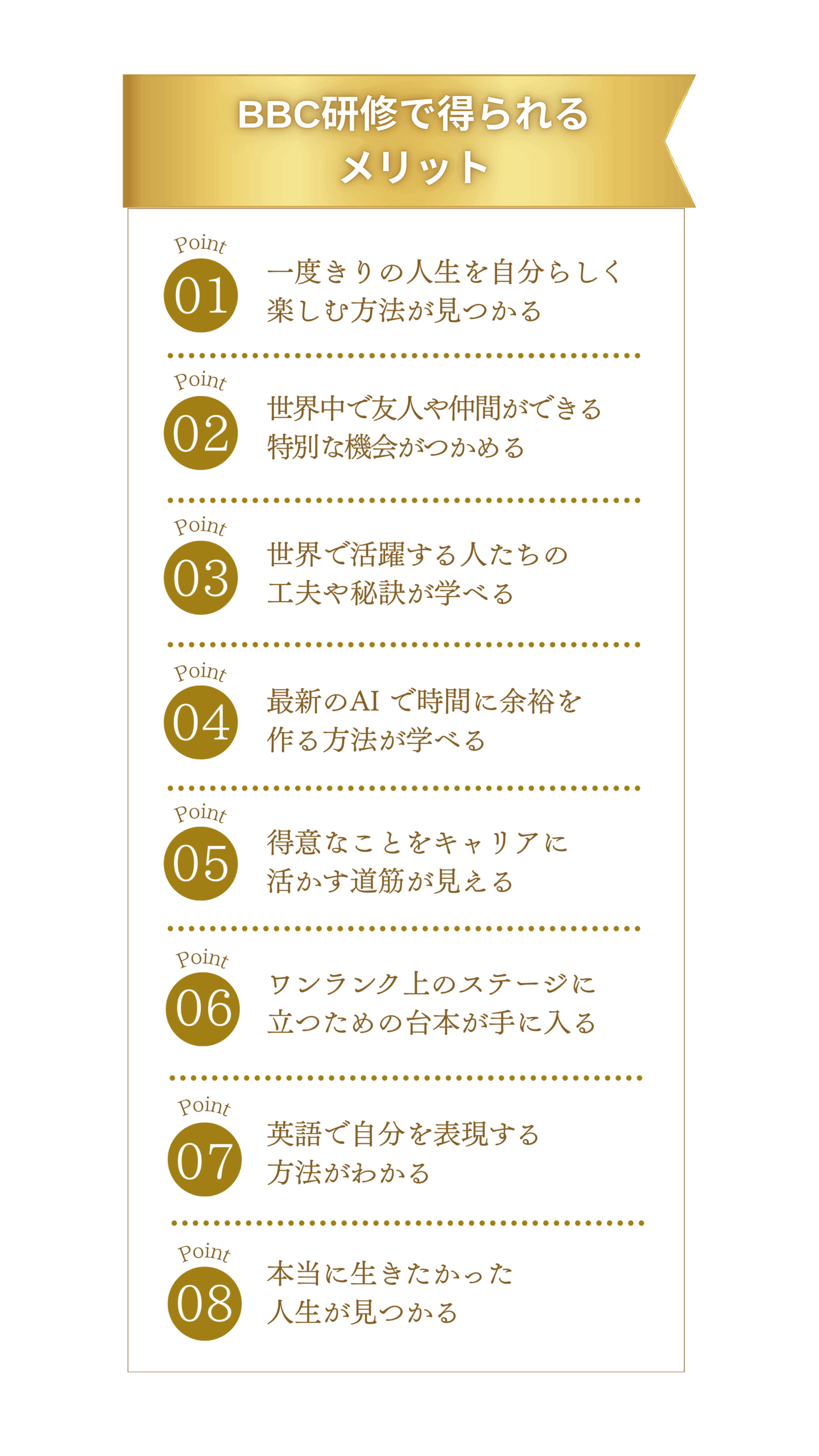 BBC Bootcamp 2日間研修は、日本だけでなく世界に人生の可能性を広げ、世界とのつながり、自由な生き方、経済など、